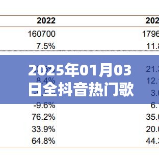随着科技的飞速发展和互联网的普及,抖音等短视频平台已经成为现代人生活中不可或缺的一部分,而在这些平台上,热门歌曲更是成为了一种流行趋势的引领者,本文将为您介绍2025年1月3日全抖音热门歌曲,带您领略当时的音乐风尚。