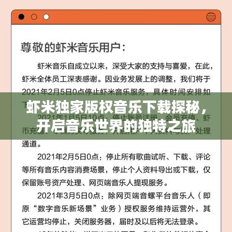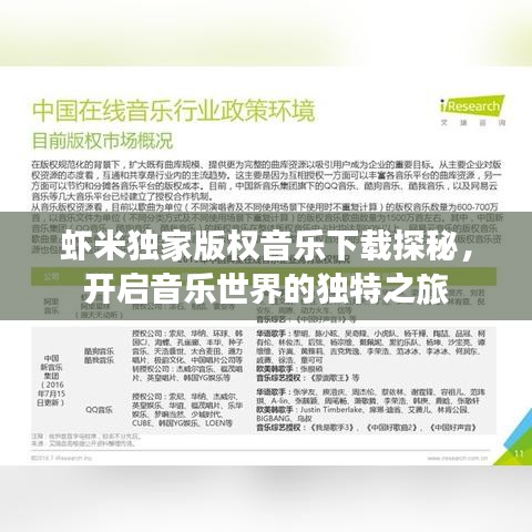 随着数字音乐产业的蓬勃发展,音乐版权问题逐渐受到重视,虾米音乐凭借其独家版权资源的优势,为广大音乐爱好者提供了丰富的音乐下载体验,本文将带您一探虾米独家版权音乐下载的魅力,感受音乐的独特之旅。