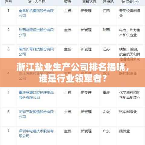 浙江盐业生产公司排名揭晓,谁是行业领军者?