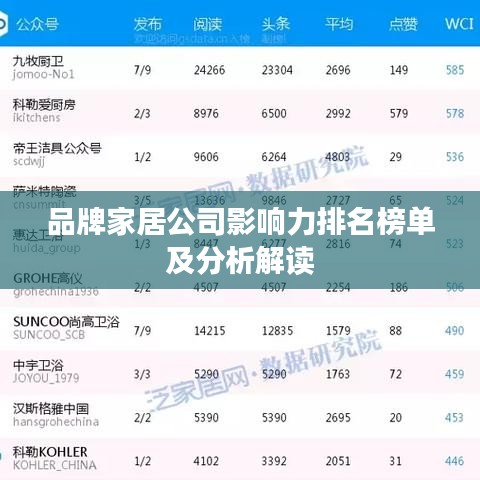 在当今社会,品牌家居公司的排名已经成为消费者选购家居产品的重要参考依据之一,这些品牌以其卓越的品质、创新的设计以及优质的服务赢得了广大消费者的信赖和喜爱,本文将介绍一些在市场上表现突出的品牌家居公司排名及其影响力分析。