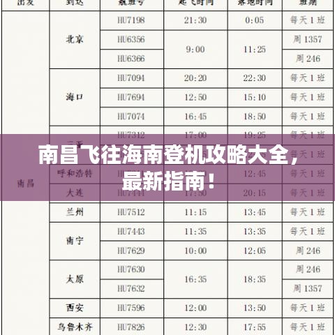 随着旅游业的繁荣,越来越多的人选择飞往海南岛享受美丽的风景和独特的热带风情,对于从南昌出发前往海南的旅客来说,了解最新的登机攻略是非常重要的,本文将为您提供一份详尽的南昌去海南登机攻略,帮助您顺利完成旅行。