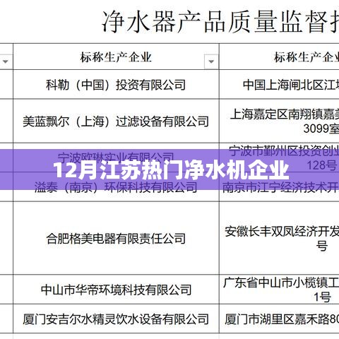 随着人们对饮用水质量的关注度不断提高,净水机市场逐渐扩大,在江苏这个经济发达、人口众多的地区,净水机企业众多,市场竞争激烈,本文将介绍几家在12月份备受关注的江苏净水机企业,展示它们在技术、品质和服务方面的优势。