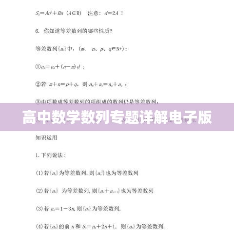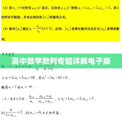 数列是高中数学的重要组成部分,对于培养学生的逻辑思维和推理能力具有重要意义,随着科技的发展,电子版教材日益受到广大师生的欢迎,本文将为大家介绍一份关于数列专题的高中数学电子版,旨在帮助大家更好地学习和掌握数列知识。