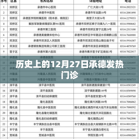在历史的长河中,每个日子都承载着无数的故事和变迁,本文将聚焦于每年的12月27日,回顾承德地区发热门诊的发展历程,探寻其背后的故事和重要意义,通过这一窗口,我们可以窥见公共卫生事业在历史进程中的变迁与进步。